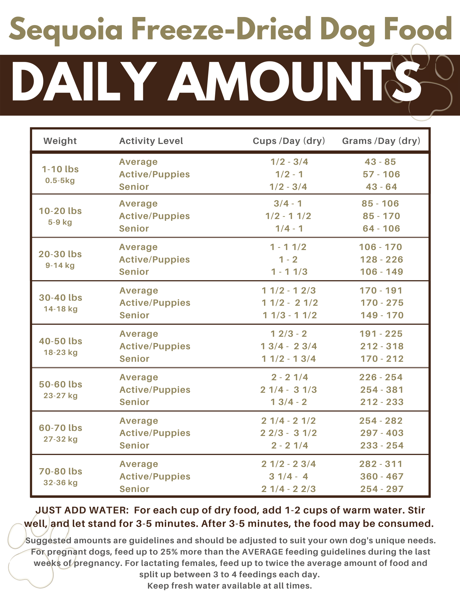 • Freeze Dried- Light weight, compact, shelf-stable (Our 1 lb. bag makes 5 lbs. of fresh food when water is added)